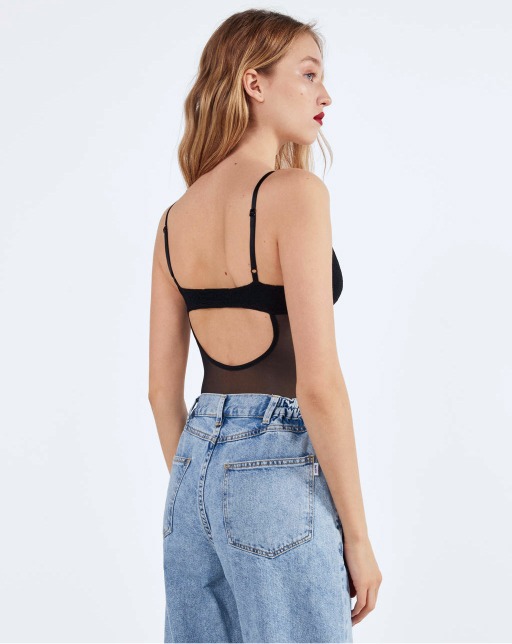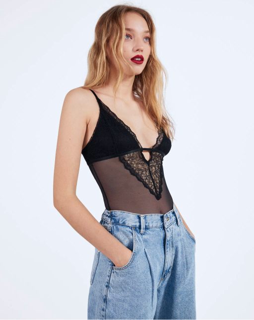 Bodysuit with slit and gathered detail